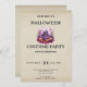 Transport your guests to a nostalgic Halloween evening with this retro-inspired costume party invitation. The vintage charm of this invitation is evident in its design, featuring a parchment-style background that mimics the look of aged paper. The classic black typography gives it an old-fashioned, timeless appeal, setting the perfect tone for a spooky yet elegant affair.