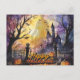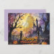 Illuminate your Halloween greetings with this Haunted Glow Halloween Postcard, featuring a spectral ghost floating amidst a glowing moonlit sky, all set against a vintage Halloween scene. Framed by eerie trees and a haunted mansion, this postcard beautifully blends nostalgic charm with spooky vibes. Perfect for sending festive cheer to friends and family, it captures the essence of Halloween in a stylish, timeless design.