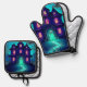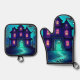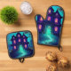 Haunted Halloween Ghost House Design Oven Mitt & Pot Holder Set