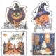 This Haunted Harvest Halloween Sticker Collection features charming pumpkin, witch, and ghostly night designs. Infuse your Halloween celebrations with this captivating set, blending playful frights with seasonal charm. The collection includes grinning jack-o'-lanterns in mystical witch hats, haunted houses illuminated by a golden moon, and friendly ghosts among the pumpkins, bringing the Halloween spirit to life. These uniquely designed stickers are ideal for party invitations, DIY crafts, spooky decorations, and various other applications. From moonlit witch scenes to cozy haunted rooms, each design captures the enchantment of Halloween, providing enjoyment for individuals of all ages.