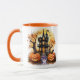 The outside of this Haunted House Corgi Witch mug features a bright white base. This mug is perfect for a Corgi lover and a Halloween lover.