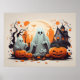 Haunted House, Ghost and Pumpkins Halloween Poster