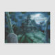 This decorative tissue paper has a picture of a haunted house graveyard on it. It is part of a collection of Halloween tissue paper sheets available from Superkalifragilistic.