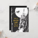 An old fashioned style black and white haunted house image, complete with full moon, bare tree and ravens is the feature on the front of this Halloween party invitation. The text on the front says "It's a ghoulish night for a party!" in orange. The solid black back has plenty of room for your party information. Easy to customize, and, if you'd like to change the font, size, location or colour of the text, you may do so by choosing "Customize it".
