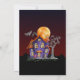 Invite your friends and loved ones this Halloween with this not-so-spooky colourful purple haunted house on a moonlight night party invitation.