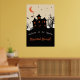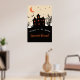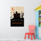 Welcome trick-or-treaters with a touch of spooky charm! This Halloween design features a classic silhouette of a haunted house with eerie glowing windows set against a moonlit sky. Bats fly overhead, while bare trees complete the spooky scene. Perfect for adding a festive touch to your front porch.