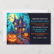This Halloween party invitation features an illustration of a spooky haunted mansion. This creative invitation can be easily customized to display when, where and a short summary of Halloween celebration details you can adjust to make this card quite personal.
