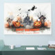 Halloween Banner featuring a spooky Haunted House, complete with a classic pumpkin Jack O'Lantern, and a wicked witch. This Halloween banner showcases a haunted house scene, alongside a carved pumpkin - also known as a Jack O'Lantern - and the figure of a witch.