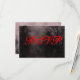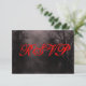 A custom response RSVP card template with grungy letters on a spooky Halloween sky with misty trees along a dark haunted road, gothic ravens and a cloudy full moon in a bloody red mist. Customize It to change fonts, add text and more, even save your design for later.