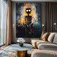 Dive into the raw intensity of this contemporary expressionist artwork. A spectral figure with hollow, glowing eyes emerges from a chaotic background of deep shadows and fiery streaks, evoking a sense of isolation and unease. The bold, textured brushstrokes and dripping paint technique create a visceral, haunting atmosphere, making this piece perfect for lovers of dark abstract art, psychological depth, and avant-garde aesthetics.