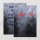 A custom invitation template with grungy letters on a spooky Halloween sky with blue misty trees along a dark haunted road, gothic ravens and a cloudy full moon with grungy letters in red and blues. Click Customize It to change fonts, colours, sizing and more, even save your design for later.`