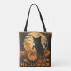 Haunting Black Cat on Pumpkin with Moon and Bats Tote Bag
