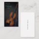 This elegant business card for string musicians features an eye-catching violin or viola on a black background strewn with clefs and musical symbols. A sleek design with a minimalist colour palette, this card design captures a sense of Bohemian decadence.