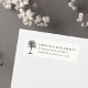 Les étiquettes d'adresse de retour chic de l'île en blanc blanc cassé présentent votre nom et votre adresse de retour en lettres grises au charbon de bois, flanquées d'une illustration de palmier de style vintage gravé pour un look tropical élégant.