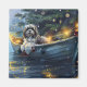 Set sail into the magic of the holiday season with this beautifully detailed illustration, showcasing a proud dog sitting in a festively decorated boat, gliding across a serene Christmas lake. The twinkling lights from nearby pine trees reflect off the water, casting a warm, festive glow that enhances the cozy ambiance. Ornaments dangle from the boat's sides, while glowing lanterns light the way, creating a scene that captures the true essence of Christmas warmth and joy. This nostalgic artwork brings a touch of holiday magic to any space, perfect for those who cherish the spirit of the season.