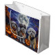 Unleash the spooky spirit with this eerie Halloween design featuring a pack of dogs under a dark, moonlit sky, surrounded by flying bats and glowing pumpkins. Perfect for those who love a touch of frightful fun with their furry friends!