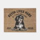 Havanese Personalized Dog lover welcome doormat. This welcome mat can be personalized with your dog’s name, the slogan can also be changed or you could use a picture of your own dog (make sure it's transparent). Text reads: Kevin lives here…. All treats welcome