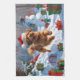 Havanese Running in Snow with Christmas Hat Kitchen Towel