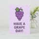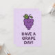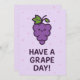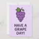 Spread a little fruity joy with this adorable "Have a Grape Day!" greeting card! Featuring a smiling cartoon grape and a soft lavender background with playful hearts, this punny card is perfect for brightening someone's day. Ideal for everyday encouragement, thank you notes, or just sending a cheerful hello to a loved one.