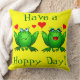 Have a Hoppy Day Cute Cartoon Frogs Throw Pillow