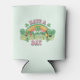 Can cooler with a St. Patrick's Day themed image. A retro grunge style design which says: Have a lucky day. With a colourful rainbow behind. Words written in a fat rounded retro style vibe. Pink and green colours.