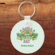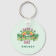 A keychain with a St. Patrick's Day themed image. A retro grunge style design which says: Have a lucky day. With a colourful rainbow behind. Words written in a fat rounded retro style vibe. Pink and green colours.