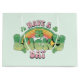 Gift bag with a St. Patrick's Day themed image. A retro grunge style design which says: Have a lucky day. With a colourful rainbow behind. Words written in a fat rounded retro style vibe. Pink and green colours.