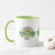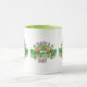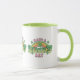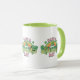 A mug with a St. Patrick's Day themed image. A retro grunge style design which says: Have a lucky day. With a colourful rainbow behind. Words written in a fat rounded retro style vibe. Pink and green colours.