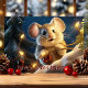 Send sweet holiday greetings with this charming card featuring an adorable mouse wrapped in twinkling Christmas lights. The playful message "Have A Mice Christmas!" adds a fun touch, making this card perfect for spreading festive joy to friends and family.