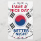 Have a Nice Day and a Better Night. One of the most beautiful flags in the world will just make you have a nice day and a better night. Korea and in fact South Korea Taegukgi / Taegeukgi (Korean: 태극기) (Hanja: 太極旗) is an amazing country. The friendly people who live there deserve even more. Its not just about the rich cultural heritage they have but the true tradition of people who know where to have a nice day and what to do when you have a nice day and a better night because Online shopping has never been better with fine quality online products and state of the art amazing designer personalized goods and items from different shopping departments ranging from cloths, daily accessories, greeting cards and postage stamps for all occasions beautiful home and pet accessories superb trendy office products and vintage work or art cool electronic items memorable photographs and long lasting gifts for all from all walk of life and to the satisfactions of the people. Cool images, beautiful products, clear presentation, information about online products available in Zazzle a place where you can create your own products and feel happy for contributing branded items and quality art work in the Achempong’s store where you are wished to Have a Nice Day and a Better Night With Gratitude and, Love all to Save