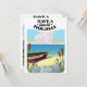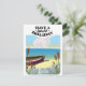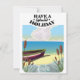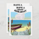 Have a Splendid Holiday, fishing boat on a sandy beach travel poster in a vintage style.