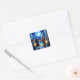 Scary Halloween stickers with ai art depicting a little boy and girl in a clown and witch costume walking out the house to encountered a scary monster at the end of their sidewalk.