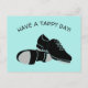 Wish them a tappy day with this fun postcard. It features an illustration of a pair of tap dance shoes in black and grey set against mint green background. Leave the "HAVE A TAPPY DAY" message as it or customize this postcard with your own fun greeting.
