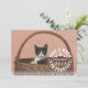 Have a warm and purrfect holiday green pet Christmas photo card. It features the text "Have a warm and purrfect holiday 2017" forming a circle accented with a divider, deer and tree and a photo of your beloved cat. The back includes a red and white cat pattern.