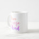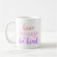 Stay inspired, or give a gift of inspiration with this colourful quote "Have courage, and be kind" coffee mug. The script typography design is cut out of a photo of pink, purple and orange clouds.