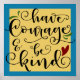 Have courage and be kind wall art. Typographical design with yellow and blue, makes a great addition to any room. This simple, positive message is sure to brighten any home.