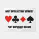 Showcase your wry duplicate bridge sense of humour and attitude with this doormat featuring the four card suits along with the following bridge advice: "Have Intellectual Vitality Play Duplicate Bridge". Memorable bridge advice door mat for any duplicate bridge player or teacher! Perfect doormat for any duplicate bridge club.
