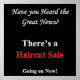 Something for everyone offers customized personalized haircut sale poster especially designed to promote and market your business. This uniquely designed haircut sale poster will not only bring a smile to your clients but they will also enjoy telling their friends about it. As a licensed cosmetologist I know firsthand the importance of promoting a salon, therefore it is wise to continuously change and market your shop as your clients’ needs increase. Happy promoting everyone…Good luck!