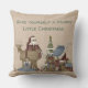 Primitive style pillow is perfect for decorating your country home for Christmas. Front design shows Santa, his sleigh, a reindeer and toys, with a Christmas tree in the background. The opposite side shows a Christmas tree with presents beneath and a whimsical snowman.