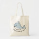 Cute kids swimming tote bag with illustration of a whale and quote "Having a whale of a time" meaning having a blast.