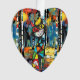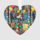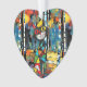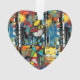 A whimsical cat with a geometric, stained-glass appearance stands in a vibrant forest of birch trees. The background features a colourful blend of autumn leaves and hues of blue and yellow. Digital Art Photoshop