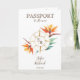 Modern and Colourful Floral Invitation Wedding Destination, like passport. Compass monogram crest on the front page, with strelitzia. Perfect design for your summer beach wedding. Add the QR code of your wedding website