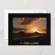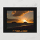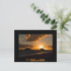 Postcard with an orange sunrise over two islands at Lanikai Beach, at the eastern shore of the island of Oahu, Hawaii with a black border and the text: 'Hawaii'.