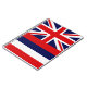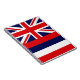 Hawaii State Flag has eight alternating horizontal white, red, and blue stripes, with the United Kingdom's Union Flag in the top corner. The flag ratio is 4:7. The design has been adjusted to fit the product. The Hawaiian Islands are an archipelago of eight major islands, several atolls, numerous smaller islets, and undersea sea mounts in the North Pacific Ocean, extending some 1,500 miles from the island of Hawaii in the south to northernmost Kure Atoll.