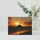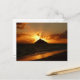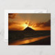 Postcard of an orange sunrise over an island at Lanikai Beach, Oahu, Hawaii.