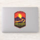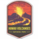 A vintage travel badge design of Hawaii Volcanoes National Park with the active Kilauea volcano spewing lava in Hawaii County, Hawaii United States.