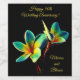 A pretty label for your wedding anniversary gala! Stunning watercolor-themed digital art design of two plumeria flowers. The background is a solid black, and the flowers have shades of blue and yellow. The stylish yellow customizable text says, "Happy 50th Wedding Anniversary!". The bottom text is also easily customized and can be changed to the names of the darling couple. This eye-catching design on a wine or sparkling wine label is an attractive keepsake gift.