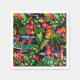 Package of 50 white paper cocktail napkins with a whimsical image of Hawaiian girls, palm trees, a tiki, colourful flowers and green foliage on black. See the entire Hawaii Napkin collection in the HOME section.