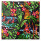 Square ceramic tile with a whimsical image of Hawaiian girls, palm trees, a tiki, colourful flowers and green foliage on black. See matching mug, paper plate and coasters. See the entire Hawaii Tile collection in the HOME section.