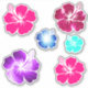 Hibiscus flowers shaped stickers are perfect for decorating journals and scrapbook pages. Bright colours will brighten envelopes, packages and note cards. Blue, pink and red Hawaiian flowers in various sizes come on sheets in various sizes. Stickers may blend together on the smallest size sheets. Look closely before ordering.